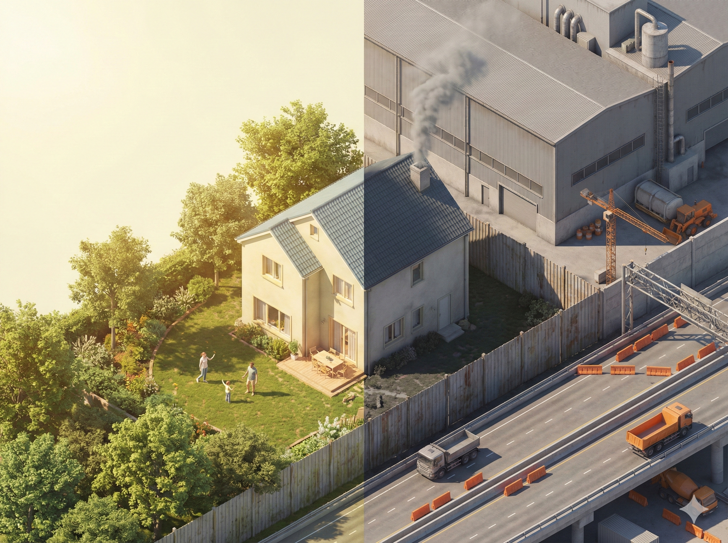 - Scénář A: Obec v novém plánu změní pole na plochu pro výrobu a skladování. Vedle vaší zahrady vyroste logistická hala. Hodnota vašeho domu padá dolů.